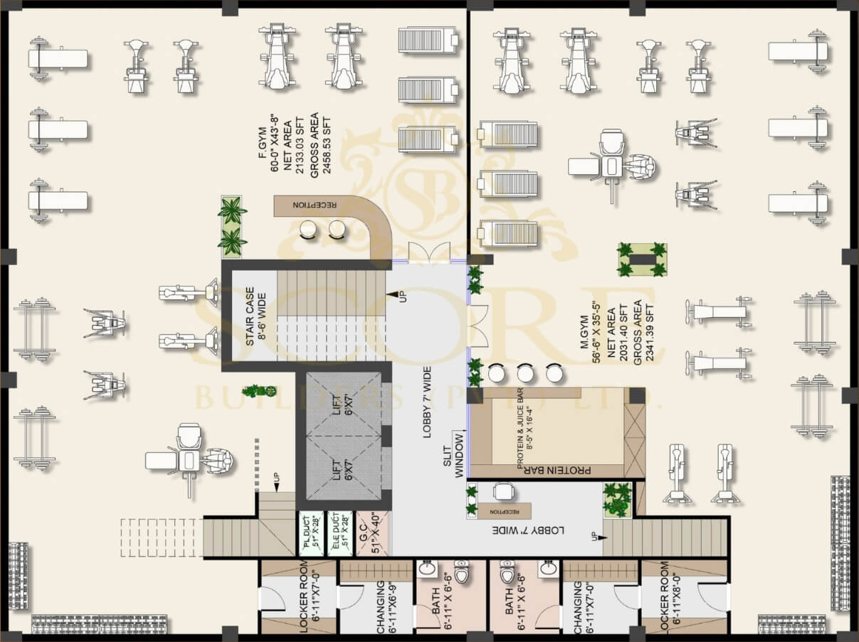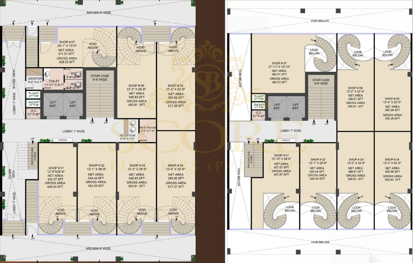 No of commercial floor (03) = l.g, ground & mezzanine.